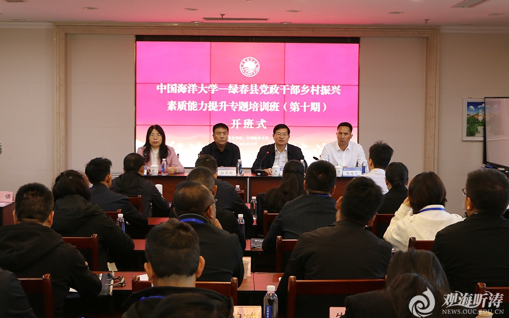 10月19日至28日,绿春县党政干部乡村振兴素质能力提升专题培训班(第十期)在中国海洋大学举办。中国海洋大学党委常委、副校长王雪鹏,绿春县委常委、宣传部部长白用明出席培训班开班仪式。