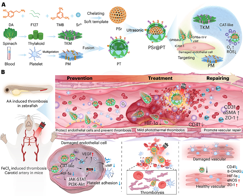 近日,中国海洋大学医药学院、海洋药物教育部重点实验室、青岛海洋科技中心海洋药物与生物制品功能实验室韩璐教授团队开发了一种血栓病理微环境ROS自驱动的纳米马达,协同NIR助力溶栓和血管修复。研究成果以“NIR-Driven Nanomotors Integrating With Platelet-Thylakoid Hybrid Membranes for Synchronized Thrombolysis and Vascular Remodeling”(近红外光驱动纳米马达整合血小板-类囊体杂化膜用于溶栓与血管重塑协同治疗)为...