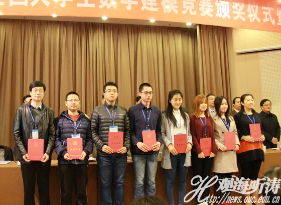 中国海洋大学师生上台领奖 本站讯 2016年全国大学生数学建模竞赛颁奖典礼于12月3日在东南大学举