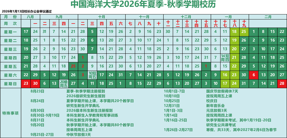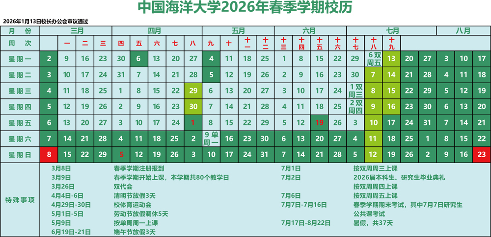 中国海洋大学校历
