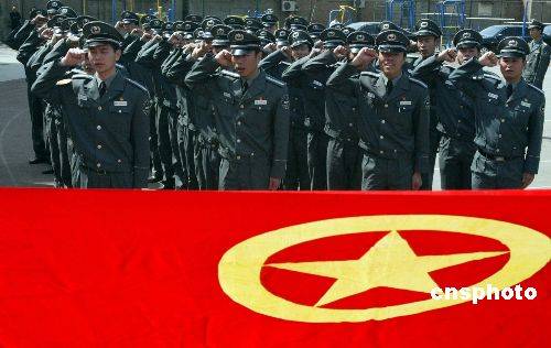 来自北京东城警方的1000名奥运保安员庄严宣誓