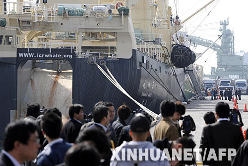 由“日新丸”号等6艘船组成的日本捕鲸船队当天返回东京港。日本水产厅官员14日承认,由于环保组织频繁抗议,日本捕鲸船队在今年捕鲸期内共捕杀551头须鲸,仅是预定目标的一半。