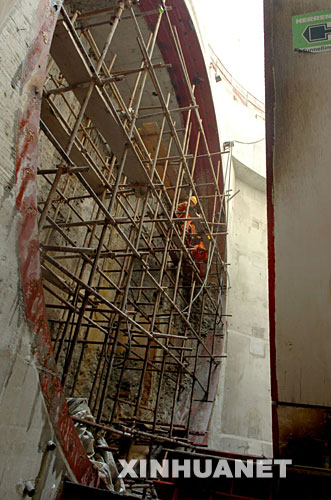 这是工程人员在穿黄隧洞口施工(2007年5月7日摄)