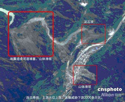 中国科学院遥感所所属北京国遥万维信息技术有限公司于14日接收到四川汶川地区最新高分辨率卫星遥感影像数据以及5米雷达数据。国遥万维根据NSPO及中国台湾“国立”师范大学NUTU积极为国内重大灾情及时提供的原始影像数据,截至5月15日凌晨,已经完成北川东部、安县北部真彩色卫星影像图的处理与分析,完成茂县、什邡、都江堰及成都雷达卫星影像采集与处理。以上是震前震后卫星遥感数据对比分析,从图中可清楚看到其中对比情况。中新社发国遥万维摄。