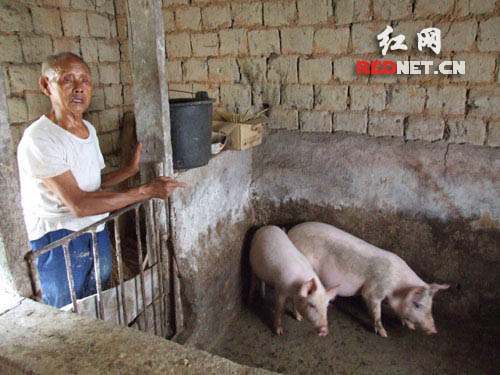 当我们第一眼见到老人时,就被他在田间劳动的情景所触动。没想到这位满头白发的老人,还能独自一人扯秧、整田、插秧。给我们带路的村民说,农村改革二十多年来,老人的一亩二分责任田和几分自留地的耕种,从没有要人家帮过工。他不论春夏秋冬,每天总是起早贪黑地干活,是一个很能吃苦的老人。老人不仅种田种地,还养猪养鸡养鸭。一年下来的毛收入有1000多元。去年,他养猪3头,出栏一头,仅此一项收入2000多元。