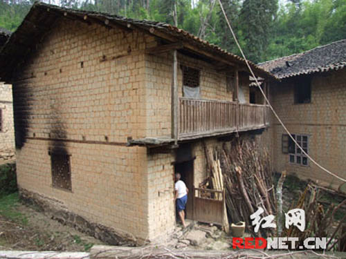(这栋土坯房就是老人的家,老人很勤劳、节俭,88岁了,还自己上山砍柴)何永康/摄影