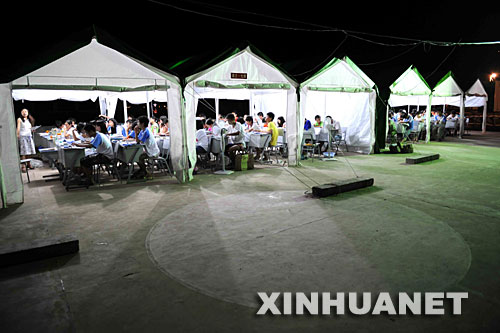 四川省青川县中学高三学生在广元市利州区临时就读处的帐篷里复习功课