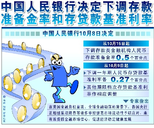 图表:中国人民银行决定下调存款准备金率和存贷款基准利率 新华社发