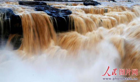 连日来,受持续阴雨天气的影响,黄河壶口瀑布水量大增,出现了绵延千余米的瀑布群,瀑布气势如虹,异常壮观。姜纯/人民图片