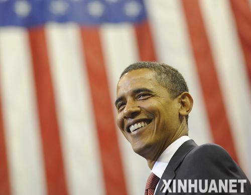 民主党总统候选人奥巴马在4日举行的美国大选中获得超过270张选举人票,当选总统已成定局。这是奥巴马2008年11月3日的资料照片。