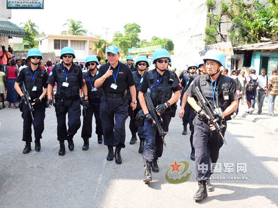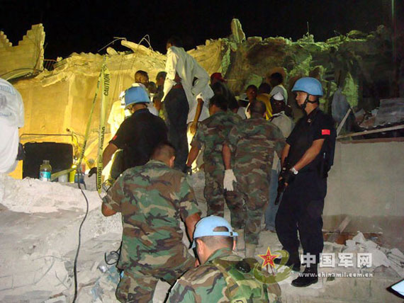 中国军网11月19日电 在海地任务区,哪里有邪恶,哪里有危险,哪里有险情,一定就有CHINA FPU(中国维和警察防暴队)的身影。2008年11月7日10时许(海地时间),海地首都太子港佩森威尔地区一所“诺言”教会学校一栋四层教学楼突然坍塌,700余名师生被废墟压埋,生死未卜。中国第七支驻海地维和警察防暴队第一时间作出反应,参战队员积极作为,不畏艰险,密切配合联海团、海地当局圆满完成了伤员救护、疏散人群、疏导交通、现场封控、安全警戒及护卫海地总统、总理、妇女部长和联合国秘书长特别代表、总警监视察救援现场的任务。