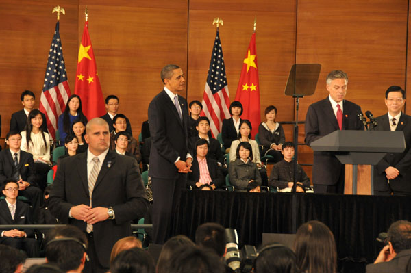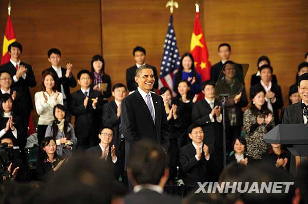 奥巴马在演讲时说,对美国来说,最好的大使、最好的使者就是年轻人,他们和你们一样,很有才能,充满活力,对未来的历史还是很乐观的,这是我们合作的下一步,惠及两国和全世界。