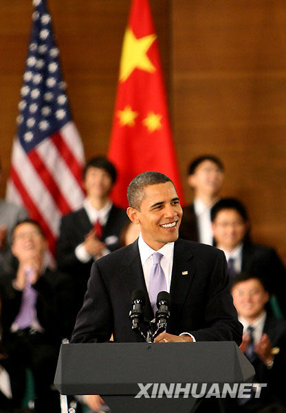 奥巴马在演讲时说,我们两国有近200个友好城市,美中科学家在许多新的研究领域和发现领域进行合作,而我们两国人民都热爱篮球,姚明就是个例子。不过,此行中我不能观看上海鲨鱼队的比赛,有点遗憾。