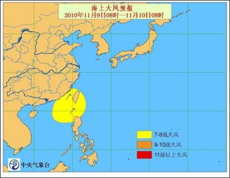 预计今天,海上大风仍然持续。9日8时至10日8时,台湾海峡、台湾以东洋面和以南海域、南海东北部海域将有7~8级、阵风9级的东北风。黄海北部海域将有5~6级西北转东北风;黄海南部海域、东海北部海域将有5~6级西北转西南风;南海中部海域将有6~7级、阵风8级的东北风;东海南部海域、南海西北部海域将有5~6级东北风。