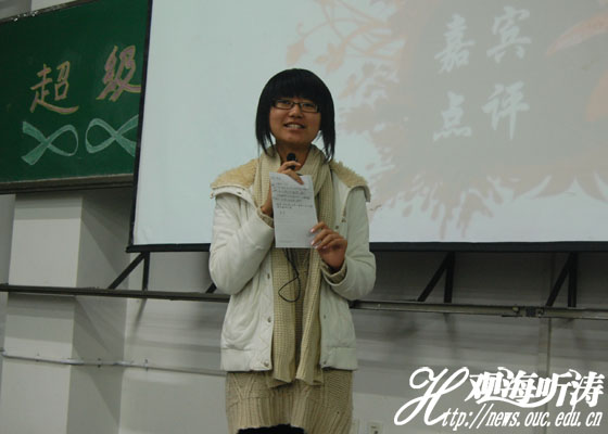 本站讯 展现自我,挑战自我。11月12日晚,海洋环境学院自强社超级演说决赛正式开始。到场的嘉宾有:海洋环境学院团总支副书记石晓然,中国海洋大学自强社总社社长吴文和,海洋环境学院自强社社长杨涛,上届超级演说校级第二名王慧娟,以及中国海洋大学演讲协会副会长李雪薇。