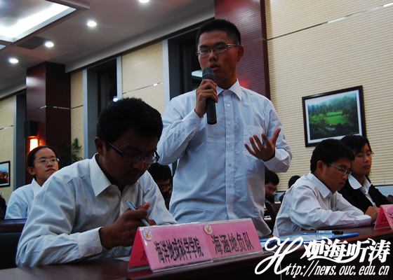 本站讯 11月26日晚,由共青团中国海洋大学委员会主办,中国海洋大学大学生邓小平理论和“三个代表”重要思想学习研究会承办的中国海洋大学2010年度时政知识竞赛总决赛在图书馆第二会议室精彩开赛。团委张新、社科院王付欣、海洋地球科学学院陈金玲、数学科学学院贾瑞、法政学院刘海英和经济学院蓝雷波等六人应邀担任本次决赛评委。法政学院以670分夺取本场总决赛第一。