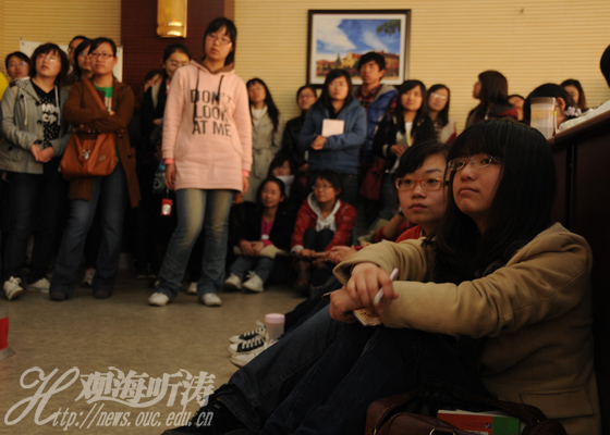 会后,很多同学涌上讲台要林少华的签名,尽管工作人员多次劝说同学们还能在学校遇到林少华,但要签名的同学依旧不见减少,甚至有同学远从鱼山甚而烟台赶来。据悉,“读书活动月”系列活动将继续陆续在海大校园内开展,敬请关注!