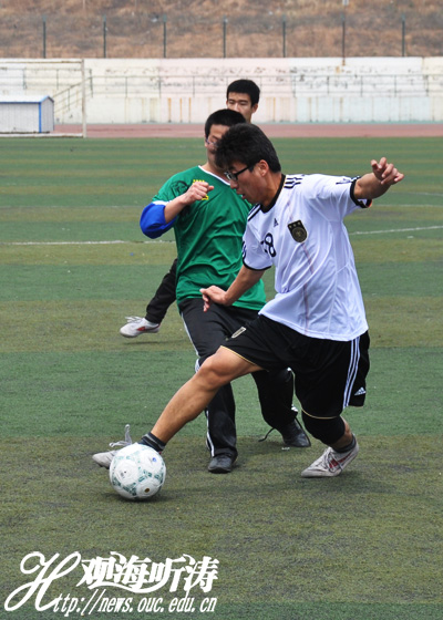本站讯 5月6日中午12时30分,由共青团中国海洋大学委员会主办、中国海洋大学研究生会承办、中国海洋大学体育系协办的研究生七人制足球赛第一场在崂山校区足球场开赛。对阵双方为身着白色球衣的信息科学与工程学院(以下简称信息)与身着绿色球衣的材料科学与工程研究院(以下简称材料)。比赛采用《七人制足球赛竞赛规则》,全场60分钟,上、下半场各30分钟,中场休息10分钟。经过一小时酣战,最终信息以2:0胜出,获得比赛胜利。
