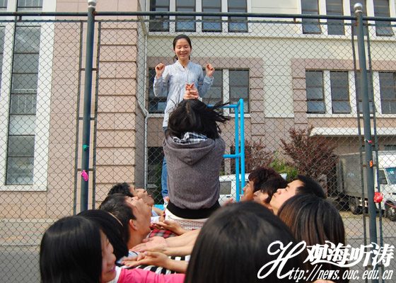 队形展示结束,拓展活动——信任被摔、地雷阵开始。两组同学分别进行不同的活动,之后互相交换。活动结束后,两组同学席地而坐总结经验。信院2009级聂亚茹告诉记者:“我上一年没有参加这个活动,没想到今年还能参加这个活动。从前都只是在电视上看到信任背摔这个游戏,今天尽然能参与其中,特别开心。从前并不知道525这个关于大学生心理健康的节日,通过拓展训练参与其中,既了解525,同时明白团结合作的重要。每个人的心理潜能是无限的,特别是与团队在一起,更能体会它的重要”。