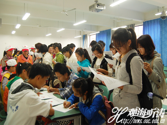 工作人员指导志愿者填表