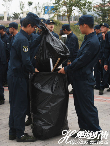 本站讯 10月13日下午,由海洋环境学院主办、“翼”之环保社承办的“国防新生与普通生环保行”活动于崂山校区足球场顺利举行。