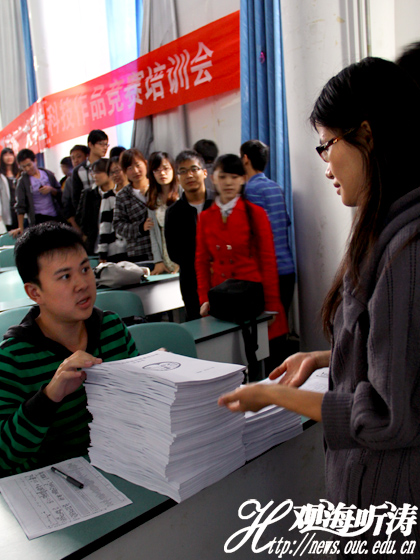 本站讯 10月13日下午,由共青团中国海洋大学委员会主办的“第八届中国海洋大学海状元‘挑战杯’系列讲座”第一季第一讲在第八教学区拉开帷幕。举办此次讲座的目的在于对准备参加第八届“挑战杯”的同学进行比赛介绍,讲解比赛流程,分享参赛经验。