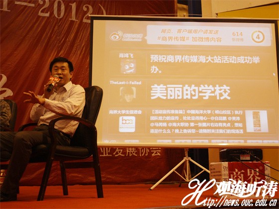 本站讯 “相信自己的能力,一旦确定就不要放弃,从容就业,更要带着激情创业。”10月20日晚,由商界传媒《商界》杂志社主办,中国海洋大学大学生职业发展协会承办的“从容就业,激情创业”企业家讲坛在信息学院北楼声学大厅顺利召开。