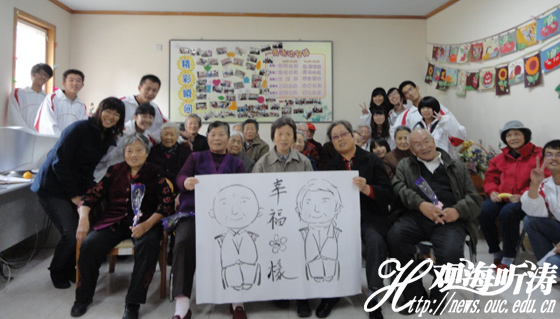 本站讯 “你们能来看我们,还有这么好的节目,真是优秀大学生啊。”10月27日下午,文学与新闻传播学院青年志愿者协会(以下简称志协)一行十几人在院团委副书记谢杉杉的带领下前往青岛市社会福利院看望那里的老人们,此次活动得到福利院的大力支持。