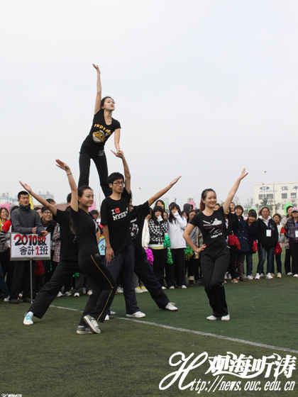 在管理学院党委书记王继贵、运动员代表牛牧笛、裁判员代表王富真以及体育系主任李传发发言之后,健美操和啦啦操优胜队身着统一服装在秋风中起舞,动感音乐配以高难度动作,引得全场欢呼。