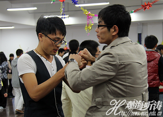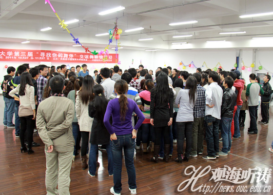 本站讯 11月7日晚,由共青团中国海洋大学委员会和中国海洋大学研究生会主办的第三届“寻找你的舞伴”交谊舞会在大学生活动中心正式拉开帷幕,历时3周的舞步授课吸引全校百余名研究生参加。本次舞会以“寻找你的舞伴”为主题,零基础授课。活动月中设有主题舞会、蛋糕DIY、才艺秀等环节。