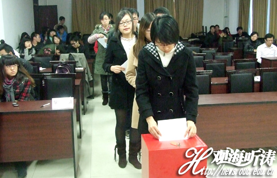 材料科学与工程系上届党委书记王昕在会上作题为“凝心聚力 求真务实 开创材料学科发展的新局面”的工作报告,回顾了上届党委两年来的工作。材料科学与工程系党委在学校党委的正确领导下,紧紧团结和依靠广大党员和全院师生员工,凝心聚力,求真务实,在人才培养、学科建设、研究方向凝练、服务社会等方面开展了扎实有效的工作。全体党员严格按照《中国海洋大学基层党组织换届选举工作办法》选举产生了王昕等5位新一届材料科学与工程系党委委员。