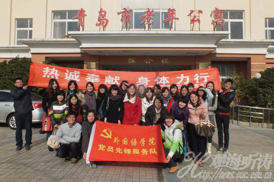 本站讯 11月24日,在外国语学院团委书记孟凡和副书记黄莺的组织下,外国语学院研究生党员和入党积极分子经过了一周的紧张准备和排练,于上午9:30-10:30在青岛市社会福利院举办文艺演出。本次文艺演出本着“热诚奉献,身体力行”的宗旨,给敬老院的老人们送去了来自学生党员的温暖和感动。