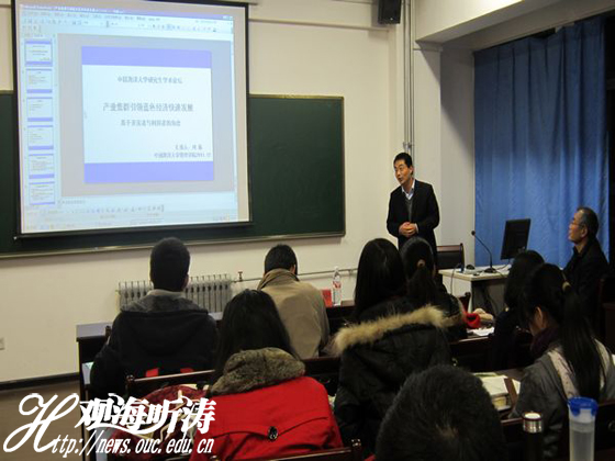 本次论坛交流会首先展示了本次活动中的优秀论文,由优秀论文《产业集群引领蓝色经济快速发展》的作者管理学院研究生刘振讲述其论文精彩部分;然后由管理学院李志刚教授对优秀论文进行点评,李老师对论文的优缺点进行了详细、精彩的点评;最后环节,罗福凯教授对优秀论文进行点评并与同学一起探讨了现阶段的科学道德与学术风气问题。