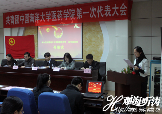 本站讯 12月8日下午,共青团中国海洋大学医药学院(以下简称医药)第一次代表大会在医药B楼学术厅隆重召开。医药党委书记吴强明,中国海洋大学团委副书记王雪鹏,医药学院党委副书记刘日霞,水产学院团委书记祁华、医药学院团委书记吴瑕,团委副书记孙通出席本次会议,医药学院80名团员代表参加了会议。