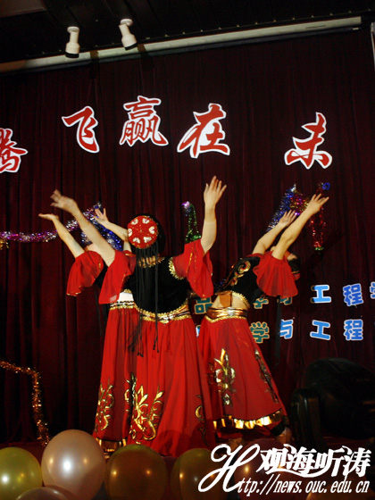 励志音乐剧《梦不落败》(食品学生会成员饰演)紧接在动感飞扬的街舞《Hopping&Dancing》后温馨上演。灯光再次点亮,投影屏幕上出现食品各实验室送来的祝福,晚会渐入尾声。由维吾尔族、傣族、彝族民族舞蹈组成的串烧《相约元旦》特色鲜明,姑娘们鲜艳的服饰喜气洋洋。晚会在《好运来》欢乐祥和的旋律中圆满落下帷幕。