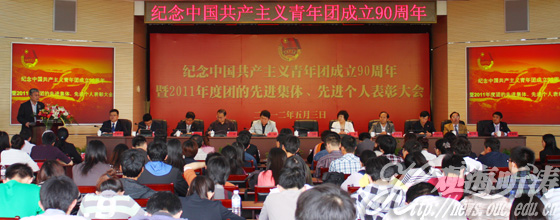 本站讯 今年是中国共产主义青年团成立90周年,为了表彰先进,鼓舞和激励广大团员青年勤奋学习,努力工作,促进学校共青团事业的全面发展,5月3日下午,中国海洋大学庆祝中国共产主义青年团成立90周年暨2011年度团的先进集体和先进个人表彰大会在崂山校区隆重召开。校党委书记于志刚,党委副书记张静,校长助理、党委办公室主任、校长办公室主任陈锐,党委常委、组织部部长、统战部部长卢光志等出席大会,并为获得表彰的先进集体、先进个人颁奖。