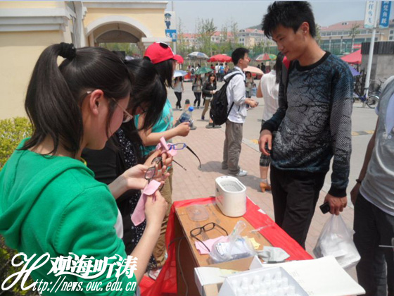 本站讯 在全国爱眼日(5月5日)即将到来之际,管理学院志愿者协会于5月4日在南区三四餐之间开展了为“眼镜一族”免费清洗眼镜的爱眼日活动,同时向同学们宣传爱眼护眼的小知识。