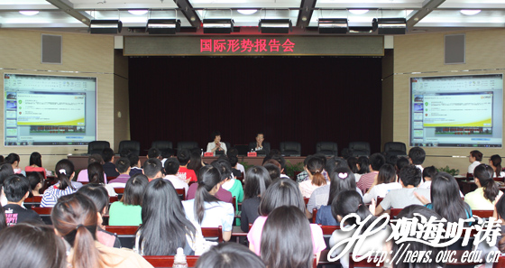 会见后,孙树忠为海大师生做题为“当代国际形势与我国外交工作”的报告,张静主持。孙树忠分别介绍和分析了当前国际形势的主要特点、当前国际形势的发展趋势、中国与大国关系、我国周边国际形势、我国外交人员的基本素质等内容。孙树忠的精彩报告为同学们开拓了视野,互动提问环节同学们非常踊跃,就欧债危机等问题向孙树忠提问,孙树忠做了详细解答。最后,张静对整场报告会作以简要总结,并指出截至2011年,海大共有13名毕业生考入外交部,今年又有2名同学考取了外交部公务员。张静勉励有志成为外交官的同学们努力学习,争取考入外交部。