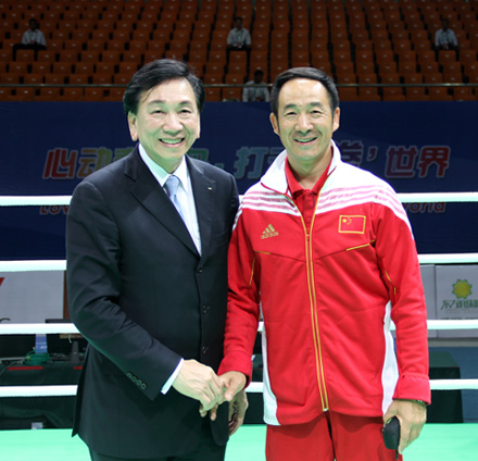 国际拳联主席吴经国先生(左)会见于联志教授