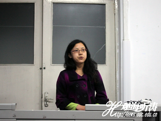 压轴出场的是来自2009级硕士的代丽娜。她首先谈到时间的划分问题。她觉得在大学期间要积累实习的经验,而且找工作不要自己一个人闷着头找,一定要学会分享。然后,她就简历投递问题发表自己的看法。最后,她向大家提出面试时应注意的问题。一定要自信,头脑要保持清醒,讲话条理清晰,要诚恳,让人觉得踏实。而且她还强调外语是非常重要的。
