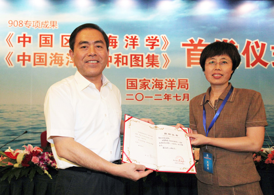 本站讯 7月25日,“我国近海海洋综合调查与评价”专项(“908专项”)的重要成果——《中国区域海洋学》和《中国海洋物种和图集》首发仪式在京举行,全国政协副主席陈宗兴和全国政协原副主席宋健分别发信表示热烈祝贺。中国海洋大学图书馆副馆长胡远珍应邀参加仪式并接受捐赠。