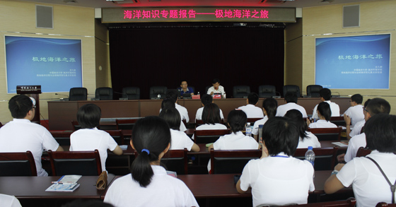 开营仪式后,海大海洋环境学院史久新教授为全体营员做了《极地海洋之旅》的海洋知识专题报告,并与各位营员现场互动。