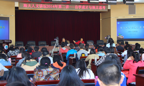 2014年3月22日上午,应王蒙先生之邀,73岁的魏明伦走出巴蜀之地,来到青岛,走进中国海洋大学,以“自学成才与独立思考”为题,讲述他那从人到“鬼”的成长故事。