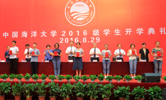 副校长闫菊、李华军分别主持了研究生开学典礼和本科生开学典礼。法政学院院长刘惠荣教授、文学与新闻传播学院朱自强教授作为教师代表分别在研究生和本科生的开学典礼上致辞。他们代表全体教师对2016级学生的到来表示欢迎,并提出了殷切期望。刘惠荣教授说,海大的命运与国家的海洋强国事业休戚相关。海大学子的人生将融入一场伟大的事业,希望同学们勇于突破自己,超越自己,收获新的成长。朱自强教授勉励同学们发展成身心健全、胸怀博大之人。希望同学们通过本科阶段的学习,实现生命的富于前景的发展,让学习结出饱满的果实。