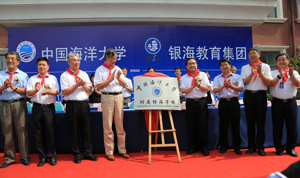 与会领导为中国海洋大学附属银海学校揭牌