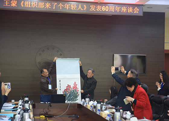 山东大学威海分校教授周怡向王蒙先生赠送画作《青春万岁》
