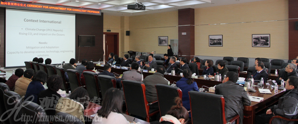 海洋化学理论与工程技术教育部重点实验室主任赵美训,人事处、教务处、发展规划处、研究生院、国际合作与交流处有关负责人,国际教育学院及各院系分管外事工作的院长或副院长等参加了聘任仪式和Ittekkot教授报告会。