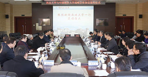 中国海洋大学与西北大学战略合作协议签约仪式现场