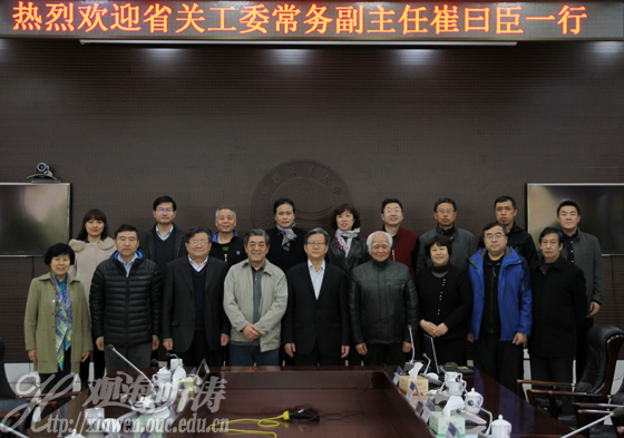 本站讯 2017年3月28日上午,山东省关心下一代工作委员会(以下简称“省关工委”)常务副主任、省人大原副主任崔曰臣,省关工委副主任、省教育厅原巡视员陈光华等一行来到中国海洋大学,就学校关心下一代工作委员会领导班子建设情况、青年学生党史国史教育开展情况进行调研,并听取学校对青年学生开展党史国史教育的意见和建议。学校党委常务副书记张静在崂山校区图书馆第一会议室会见了崔曰臣常务副主任一行。