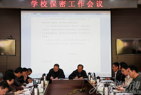 会上,党委办公室副主任、校长办公室副主任、保密委员会办公室副主任刘日霞通报学校保密自查自评及现场检查情况。吴强明主任传达上级有关涉密人员管理的文件精神,并宣读《保密责任书》有关内容。卢光志与有关单位负责人签订《保密责任书》。